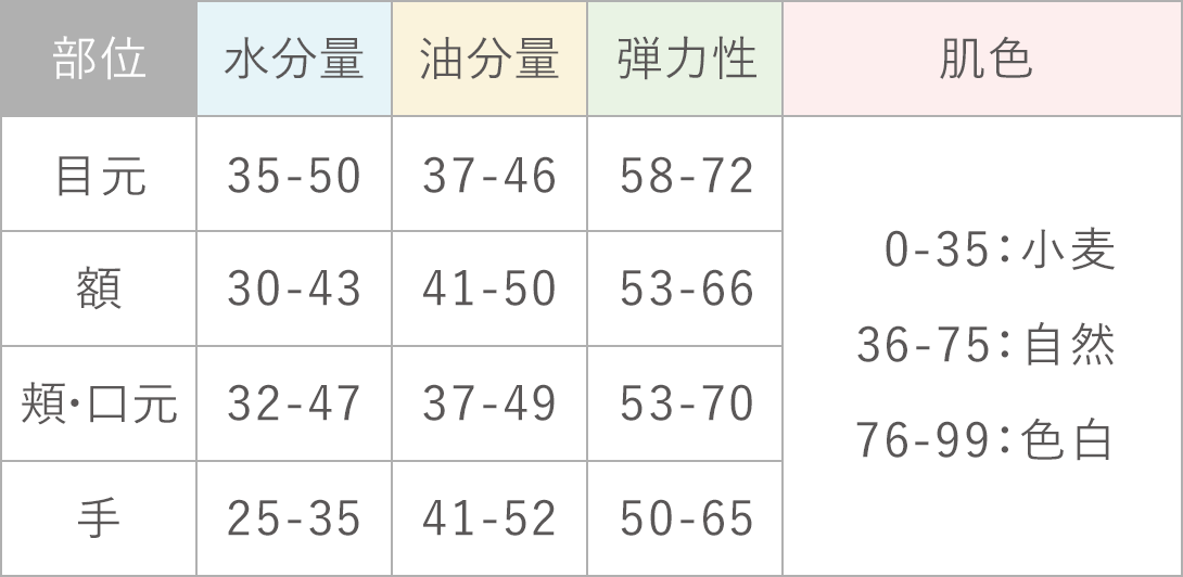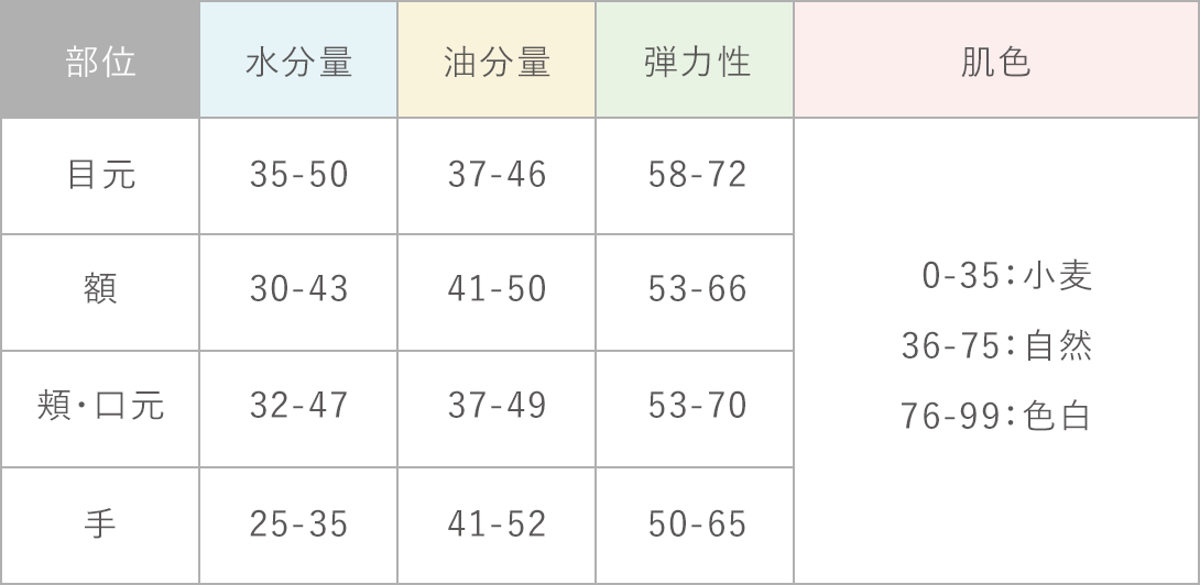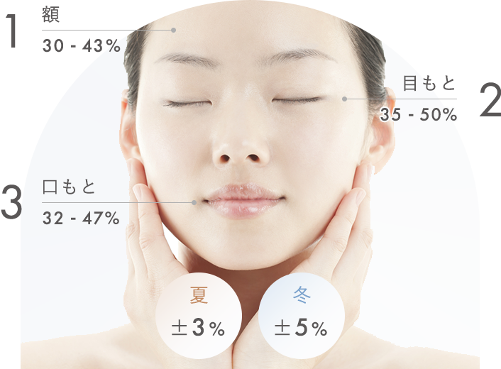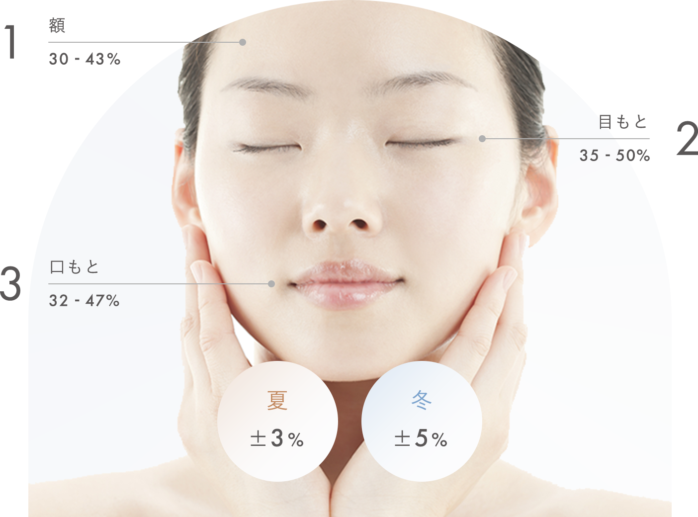 日やけや季節の変化、食習慣や日常生活のストレスなどが原因で水油バランスが崩れると、肌トラブルが発生します。バランスの良い水油バランスと弾力性の数値を理解して、環境と状況に適したスキンケアを施してください。