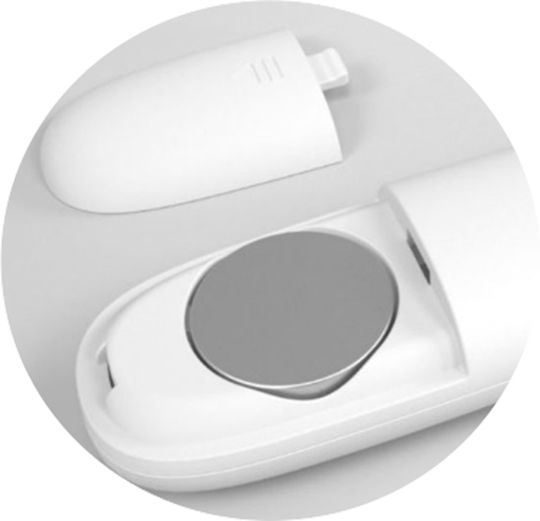 手間のかかる充電式ではなくボタン電池(CR2032)を採用。1日2回の測定とした場合、2年半程度使用できる省エネ設計です。